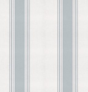 El quitamiedos y las traseras están lacados en un tono azul grisáceo, a juego del papel pintado de la pared. Un diseño a rayas verticales que no solo decora, sino que visualmente eleva los techos, haciendo que la habitación parezca más amplia.